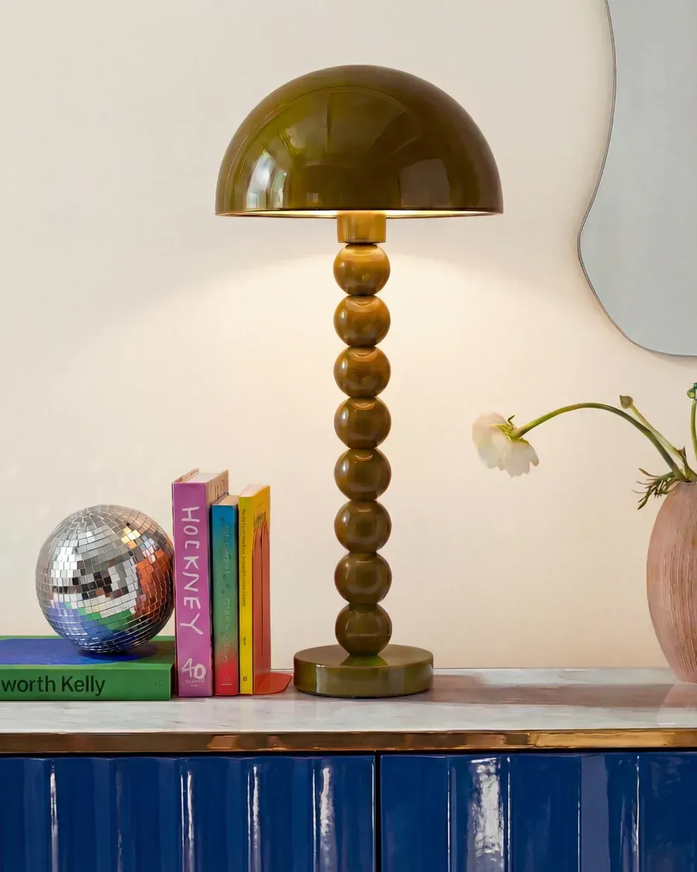 A bold dotted table lamp that blends playful design with warm ambient lighting for modern interiors.