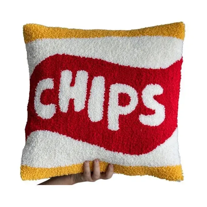 A quirky chips-inspired tufted cotton cushion cover that adds a playful snack-themed touch to your sofa or bed.