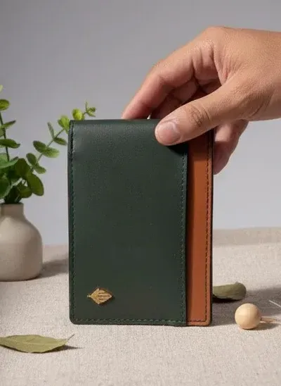 A sleek green vegan leather wallet designed for modern men, offering organized storage with a refined minimalist look for everyday professional and casual use.