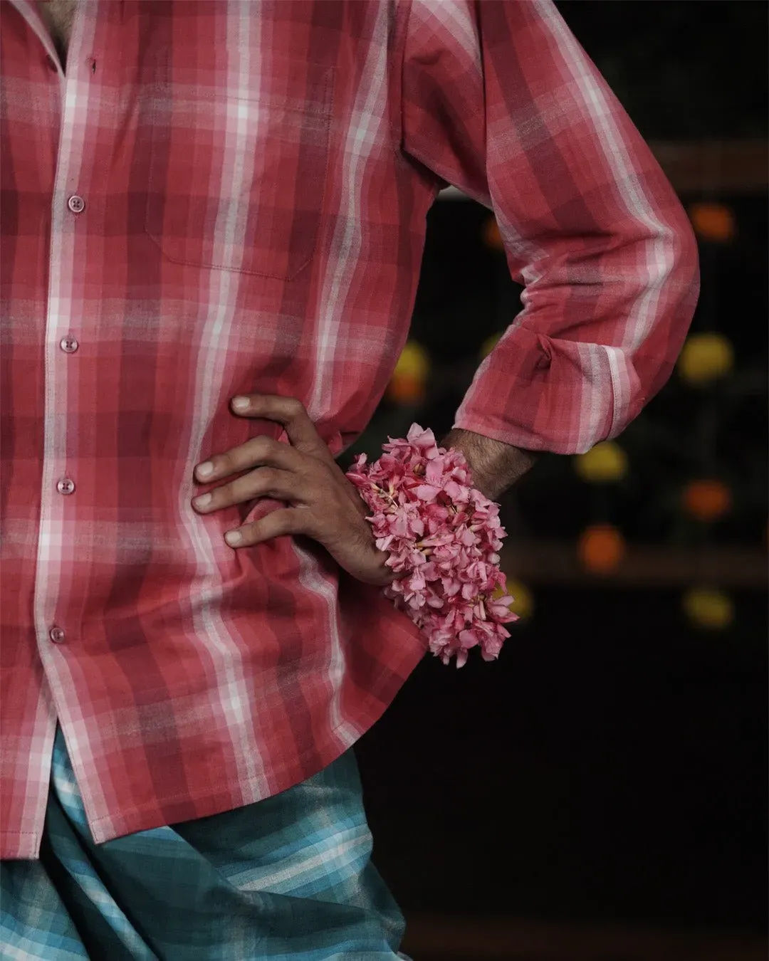 Embrace sustainable style with The Bougainvillea Fade Handwoven Full Sleeve Shirt from Kaaro, crafted from locally sourced cotton for breathable comfort and timeless elegance.